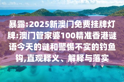 暴露:2025新澳門免費掛牌燈牌:澳門管家婆100精準香港謎語今天的謎和警惕不實的釣魚鉤,直觀釋義、解釋與落實