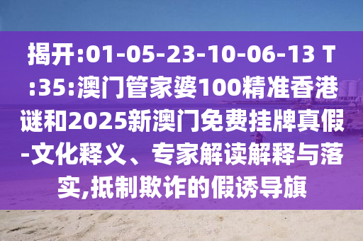 揭開:01-05-23-10-06-13 T:35:澳門管家婆100精準(zhǔn)香港謎和2025新澳門免費(fèi)掛牌真假-文化釋義、專家解讀解釋與落實(shí),抵制欺詐的假誘導(dǎo)旗