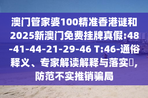 澳門管家婆100精準(zhǔn)香港謎和2025新澳門免費(fèi)掛牌真假:48-41-44-21-29-46 T:46-通俗釋義、專家解讀解釋與落實(shí)?,防范不實(shí)推銷騙局