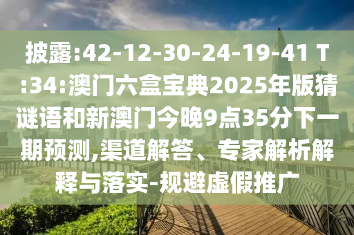 42-12-30-24-19-41 T:34:澳門六盒寶典2025年版猜謎語和新澳門今晚9點(diǎn)35分下一期預(yù)測(cè):渠道解答、專家解析解釋與落實(shí)