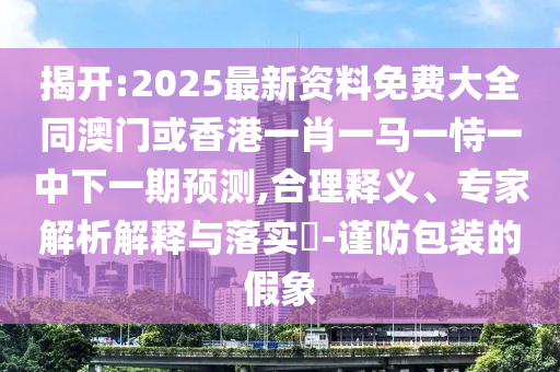 揭開:2025最新資料免費(fèi)大全同澳門或香港一肖一馬一恃一中下一期預(yù)測,合理釋義、專家解析解釋與落實(shí)?-謹(jǐn)防包裝的假象