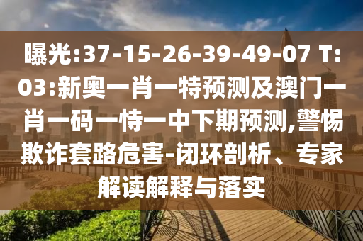 曝光:37-15-26-39-49-07 T:03:新奧一肖一特預(yù)測及澳門一肖一碼一恃一中下期預(yù)測,警惕欺詐套路危害-閉環(huán)剖析、專家解讀解釋與落實