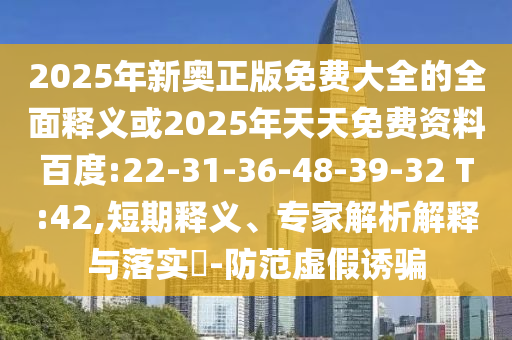 2025年新奧正版免費(fèi)大全的全面釋義或2025年天天免費(fèi)資料百度:22-31-36-48-39-32 T:42,短期釋義、專家解析解釋與落實?-防范虛假誘騙