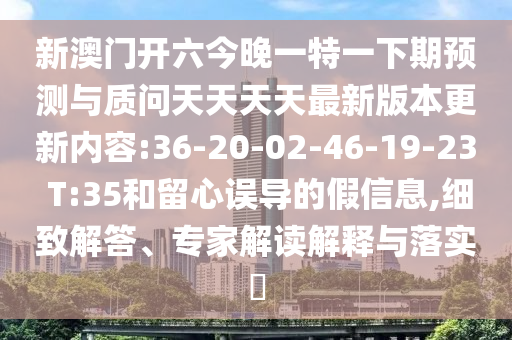 新澳門開六今晚一特一下期預(yù)測與質(zhì)問天天天天最新版本更新內(nèi)容:36-20-02-46-19-23 T:35:細(xì)致解答、專家解讀解釋與落實?