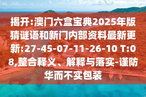 揭開:澳門六盒寶典2025年版猜謎語(yǔ)和新門內(nèi)部資料最新更新:27-45-07-11-26-10 T:08,整合釋義、解釋與落實(shí)-謹(jǐn)防華而不實(shí)包裝