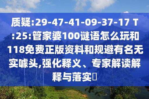 29-47-41-09-37-17 T:25:管家婆100謎語怎么玩和118免費正版資料的強化釋義、專家解讀解釋與落實?