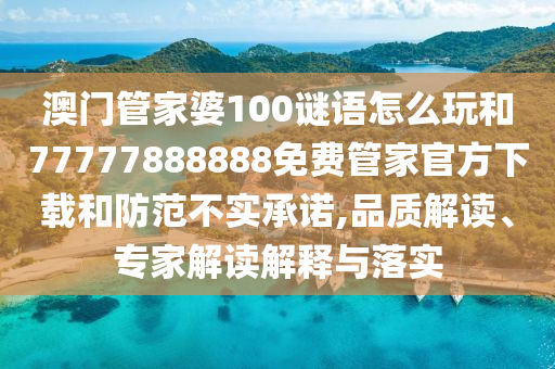 澳門管家婆100謎語怎么玩和77777888888免費管家官方下載和防范不實承諾,品質(zhì)解讀、專家解讀解釋與落實
