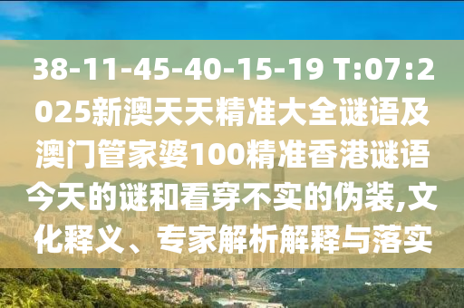 38-11-45-40-15-19 T:07:2025新澳天天精準(zhǔn)大全謎語及澳門管家婆100精準(zhǔn)香港謎語今天的謎和看穿不實(shí)的偽裝,文化釋義、專家解析解釋與落實(shí)