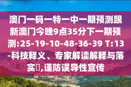 澳門一碼一特一中一期預(yù)測(cè)跟新澳門今晚9點(diǎn)35分下一期預(yù)測(cè):25-19-10-48-36-39 T:13的科技釋義、專家解讀解釋與落實(shí)?