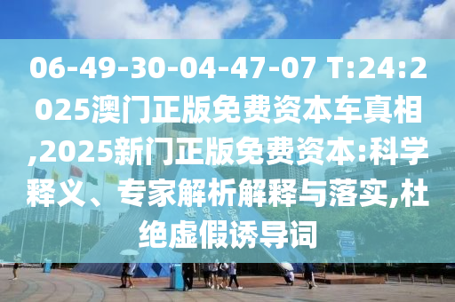 06-49-30-04-47-07 T:24:2025澳門正版免費資本車真相,2025新門正版免費資本:科學釋義、專家解析解釋與落實,杜絕虛假誘導詞