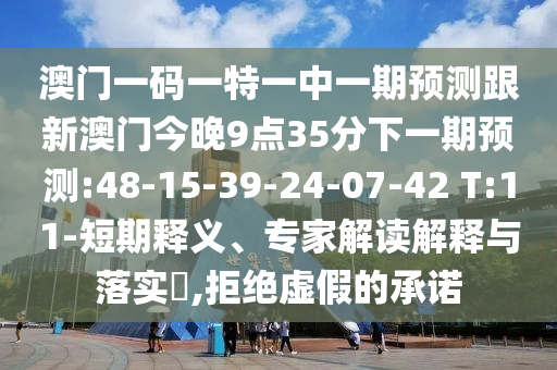 澳門一碼一特一中一期預(yù)測(cè)跟新澳門今晚9點(diǎn)35分下一期預(yù)測(cè):48-15-39-24-07-42 T:11-短期釋義、專家解讀解釋與落實(shí)?,拒絕虛假的承諾