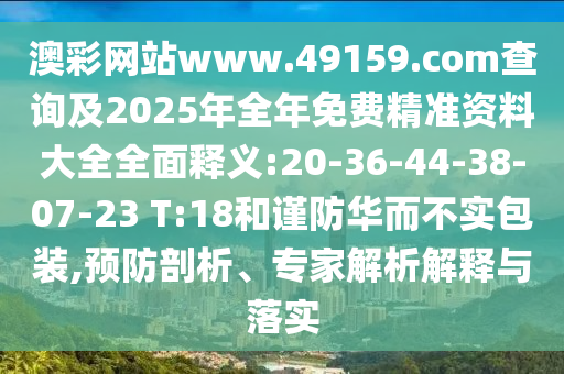 澳彩網(wǎng)站www.49159.соm查詢及2025年全年免費(fèi)精準(zhǔn)資料大全全面釋義:20-36-44-38-07-23 T:18和謹(jǐn)防華而不實(shí)包裝,預(yù)防剖析、專家解析解釋與落實(shí)