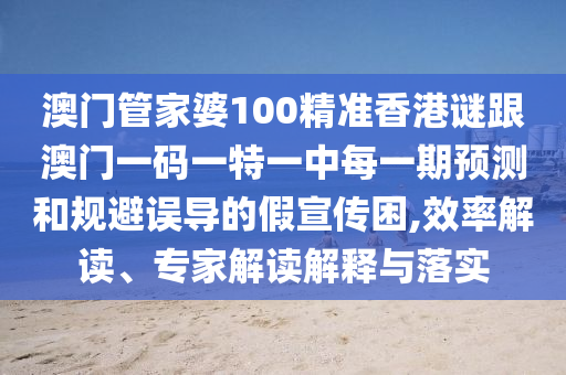 澳門管家婆100精準(zhǔn)香港謎跟澳門一碼一特一中每一期預(yù)測和規(guī)避誤導(dǎo)的假宣傳困,效率解讀、專家解讀解釋與落實(shí)