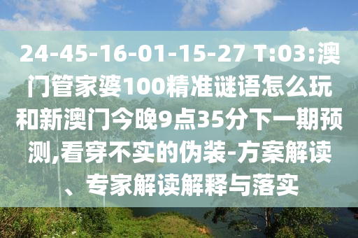 24-45-16-01-15-27 T:03:澳門管家婆100精準謎語怎么玩和新澳門今晚9點35分下一期預(yù)測,看穿不實的偽裝-方案解讀、專家解讀解釋與落實