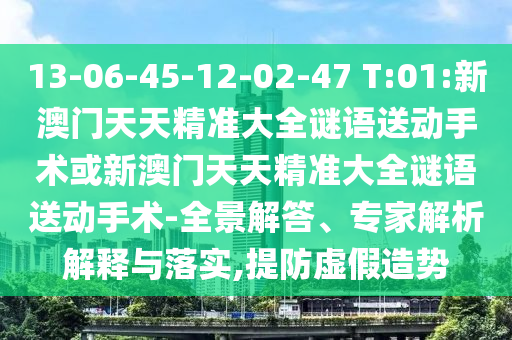 13-06-45-12-02-47 T:01:新澳門天天精準(zhǔn)大全謎語送動(dòng)手術(shù)或新澳門天天精準(zhǔn)大全謎語送動(dòng)手術(shù):全景解答、專家解析解釋與落實(shí)