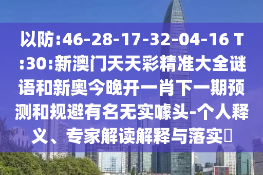 以防:46-28-17-32-04-16 T:30:新澳門天天彩精準(zhǔn)大全謎語和新奧今晚開一肖下一期預(yù)測和規(guī)避有名無實(shí)噱頭-個(gè)人釋義、專家解讀解釋與落實(shí)?