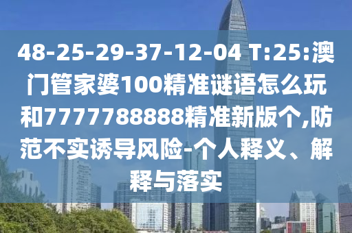 48-25-29-37-12-04 T:25:澳門管家婆100精準謎語怎么玩和7777788888精準新版?zhèn)€:個人釋義、解釋與落實