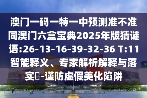澳門一碼一特一中預測準不準同澳門六盒寶典2025年版猜謎語:26-13-16-39-32-36 T:11智能釋義、專家解析解釋與落實?-謹防虛假美化陷阱