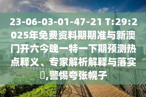 關(guān)于揭露“23-06-03-01-47-21 T:29:2025年免費(fèi)資料期期準(zhǔn)與新澳門開六今晚一特一下期預(yù)測(cè)熱點(diǎn)”的釋義、專家解讀與落實(shí)以及警惕虛假宣傳