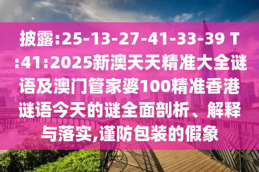 披露:25-13-27-41-33-39 T:41:2025新澳天天精準(zhǔn)大全謎語及澳門管家婆100精準(zhǔn)香港謎語今天的謎全面剖析、解釋與落實,謹(jǐn)防包裝的假象