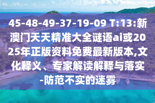 45-48-49-37-19-09 T:13:新澳門天天精準(zhǔn)大全謎語ai或2025年正版資料免費最新版本,文化釋義、專家解讀解釋與落實-防范不實的迷霧