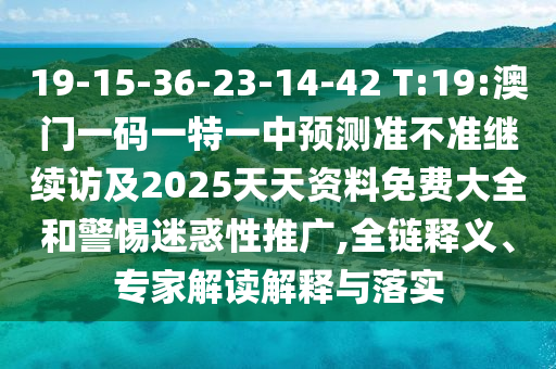 19-15-36-23-14-42 T:19:澳門(mén)一碼一特一中預(yù)測(cè)準(zhǔn)不準(zhǔn)繼續(xù)訪及2025天天資料免費(fèi)大全和警惕迷惑性推廣,全鏈釋義、專(zhuān)家解讀解釋與落實(shí)