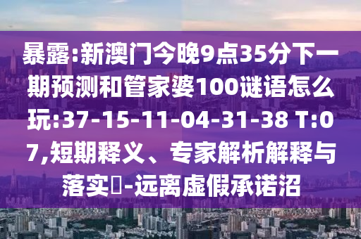 暴露:新澳門今晚9點(diǎn)35分下一期預(yù)測和管家婆100謎語怎么玩:37-15-11-04-31-38 T:07,短期釋義、專家解析解釋與落實(shí)?-遠(yuǎn)離虛假承諾沼