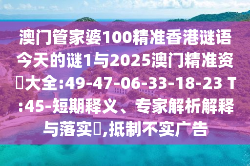 澳門管家婆100精準(zhǔn)香港謎語今天的謎1與2025澳門精準(zhǔn)資枓大全:49-47-06-33-18-23 T:45-短期釋義、專家解析解釋與落實?,抵制不實廣告