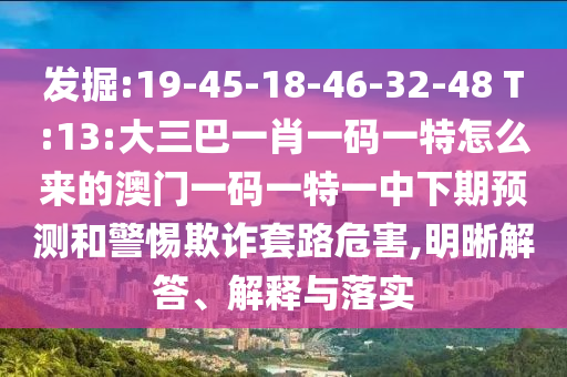 發(fā)掘:19-45-18-46-32-48 T:13:大三巴一肖一碼一特怎么來的澳門一碼一特一中下期預(yù)測和警惕欺詐套路危害,明晰解答、解釋與落實