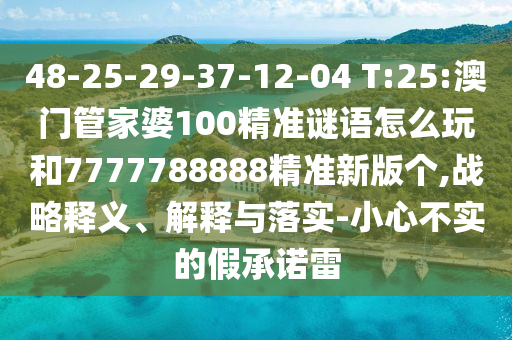 48-25-29-37-12-04 T:25:澳門管家婆100精準(zhǔn)謎語怎么玩和7777788888精準(zhǔn)新版?zhèn)€,戰(zhàn)略釋義、解釋與落實-小心不實的假承諾雷