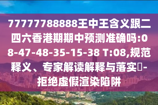 您好!針對(duì)您提供的關(guān)鍵詞:“77777788888王中王含義”、“二四六香港期期中預(yù)測(cè)準(zhǔn)確嗎”、“T:08規(guī)范釋義、專家解讀解釋與落實(shí)”以及“拒絕虛假渲染陷阱”,我將為您進(jìn)行全面釋義、解釋與落實(shí),并特別提醒公眾警惕虛假宣傳。