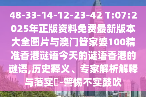 48-33-14-12-23-42 T:07:2025年正版資料免費最新版本大全圖片與澳門管家婆100精準香港謎語今天的謎語香港的謎語,歷史釋義、專家解析解釋與落實?-警惕不實鼓吹