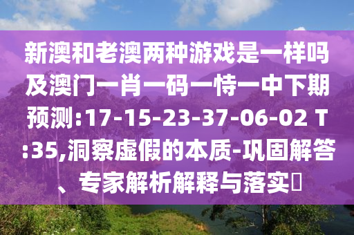 新澳和老澳兩種游戲是一樣嗎及澳門一肖一碼一恃一中下期預(yù)測(cè):17-15-23-37-06-02 T:35,洞察虛假的本質(zhì)-鞏固解答、專家解析解釋與落實(shí)?