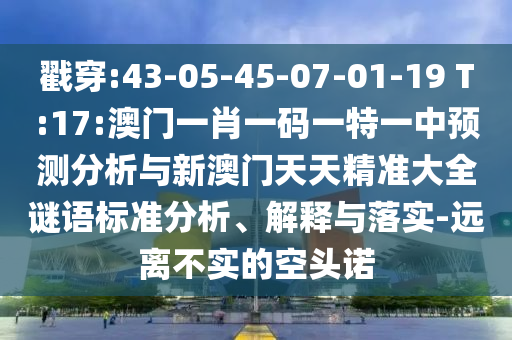 戳穿:43-05-45-07-01-19 T:17:澳門一肖一碼一特一中預測分析與新澳門天天精準大全謎語標準分析、解釋與落實-遠離不實的空頭諾