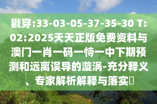 戳穿:33-03-05-37-35-30 T:02:2025天天正版免費資料與澳門一肖一碼一恃一中下期預測和遠離誤導的漩渦-充分釋義、專家解析解釋與落實?