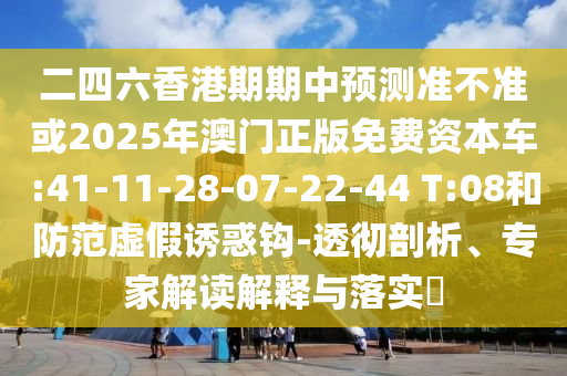 二四六香港期期中預(yù)測(cè)準(zhǔn)不準(zhǔn)或2025年澳門正版免費(fèi)資本車:41-11-28-07-22-44 T:08和防范虛假誘惑鉤-透徹剖析、專家解讀解釋與落實(shí)?