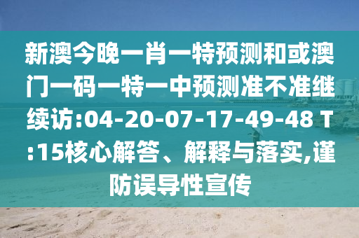 新澳今晚一肖一特預測和或澳門一碼一特一中預測準不準繼續(xù)訪:04-20-07-17-49-48 T:15核心解答、解釋與落實,謹防誤導性宣傳