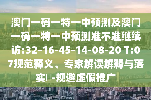澳門一碼一特一中預(yù)測(cè)及澳門一碼一特一中預(yù)測(cè)準(zhǔn)不準(zhǔn)繼續(xù)訪:32-16-45-14-08-20 T:07的規(guī)范釋義、專家解讀解釋與落實(shí)?