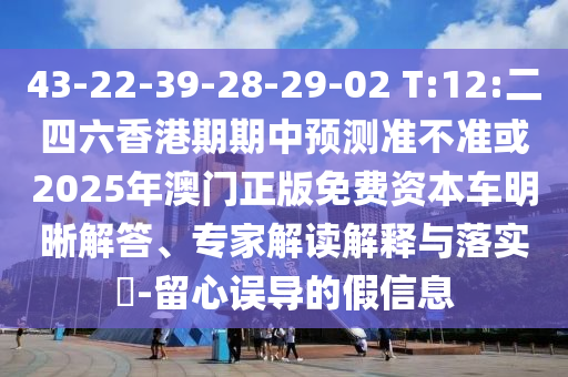 43-22-39-28-29-02 T:12:二四六香港期期中預(yù)測(cè)準(zhǔn)不準(zhǔn)或2025年澳門正版免費(fèi)資本車:明晰解答、專家解讀解釋與落實(shí)?