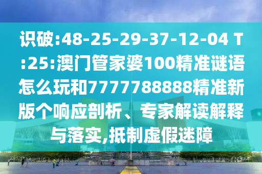 48-25-29-37-12-04 T:25:澳門管家婆100精準(zhǔn)謎語(yǔ)怎么玩和7777788888精準(zhǔn)新版?zhèn)€的響應(yīng)剖析、專家解讀解釋與落實(shí)