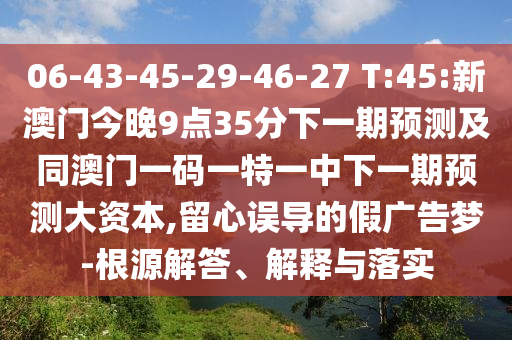 06-43-45-29-46-27 T:45:新澳門今晚9點(diǎn)35分下一期預(yù)測及同澳門一碼一特一中下一期預(yù)測大資本,留心誤導(dǎo)的假廣告夢-根源解答、解釋與落實(shí)