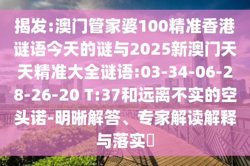 當(dāng)我們提及“揭發(fā):澳門管家婆100精準(zhǔn)香港謎語”,實際上涉及的是預(yù)測與解讀游戲謎語的現(xiàn)象,澳門管家婆的預(yù)測往往基于一定的統(tǒng)計數(shù)據(jù)和經(jīng)驗分析,而香港謎語則更多地帶有文化色彩和地域特色,關(guān)于提到的具體數(shù)字如“今天的謎與2025新澳門天天精準(zhǔn)大全謎語:03-34-06-28-26-20 T:37”,這些數(shù)字很可能與游戲號碼有關(guān),而“遠(yuǎn)離不實的空頭諾”則是提醒我們要警惕虛假宣傳,避免被不實承諾所誤導(dǎo)。