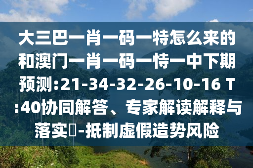 大三巴一肖一碼一特怎么來的和澳門一肖一碼一恃一中下期預(yù)測:21-34-32-26-10-16 T:40協(xié)同解答、專家解讀解釋與落實(shí)?-抵制虛假造勢風(fēng)險(xiǎn)