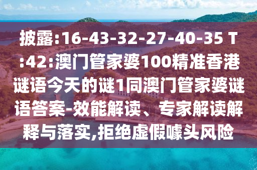 16-43-32-27-40-35 T:42:澳門(mén)管家婆100精準(zhǔn)香港謎語(yǔ)今天的謎1同澳門(mén)管家婆謎語(yǔ)答案的效能解讀、專家解讀解釋與落實(shí)
