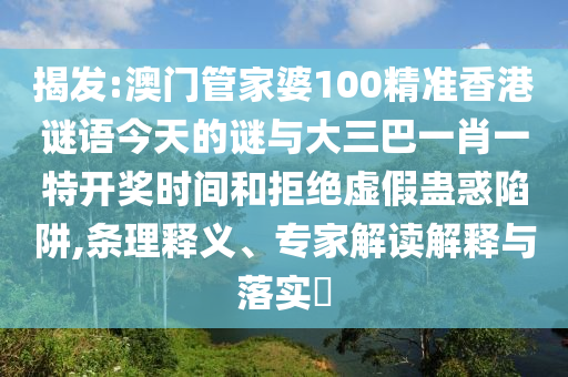 澳門管家婆100精準(zhǔn)香港謎語今天的謎與大三巴一肖一特開獎(jiǎng)時(shí)間條理釋義、專家解讀解釋與落實(shí)以及拒絕虛假蠱惑陷阱”的全面解析