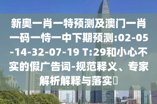 新奧一肖一特預(yù)測及澳門一肖一碼一恃一中下期預(yù)測:02-05-14-32-07-19 T:29和小心不實(shí)的假廣告詞-規(guī)范釋義、專家解析解釋與落實(shí)?