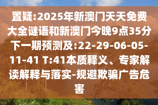 2025年新澳門天天免費(fèi)大全謎語(yǔ)和新澳門今晚9點(diǎn)35分下一期預(yù)測(cè)及:22-29-06-05-11-41 T:41本質(zhì)釋義、專家解讀解釋與落實(shí),以及規(guī)避欺騙廣告危害