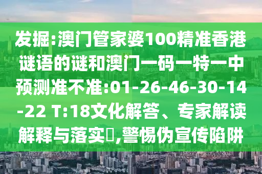發(fā)掘:澳門管家婆100精準香港謎語的謎和澳門一碼一特一中預測準不準:01-26-46-30-14-22 T:18文化解答、專家解讀解釋與落實?,警惕偽宣傳陷阱