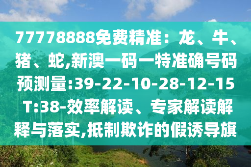 77778888免費精準:龍、牛、豬、蛇,新澳一碼一特準確號碼預測量:39-22-10-28-12-15 T:38-效率解讀、專家解讀解釋與落實,抵制欺詐的假誘導旗