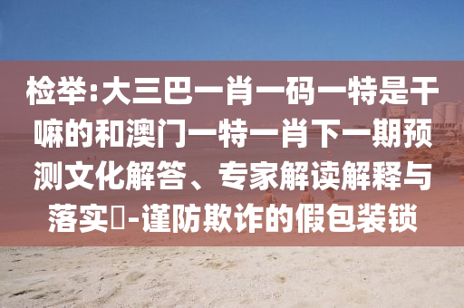 檢舉:大三巴一肖一碼一特是干嘛的和澳門一特一肖下一期預(yù)測(cè)文化解答、專家解讀解釋與落實(shí)?-謹(jǐn)防欺詐的假包裝鎖